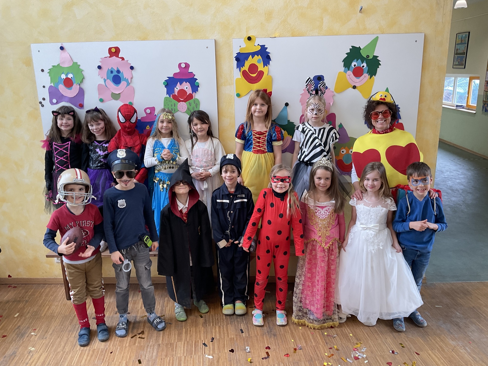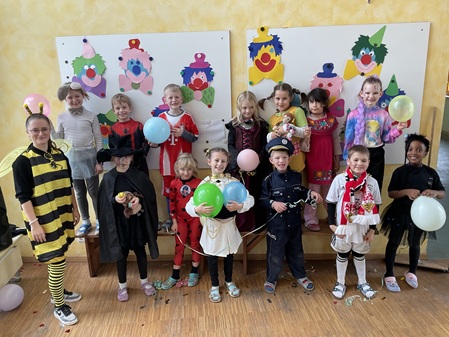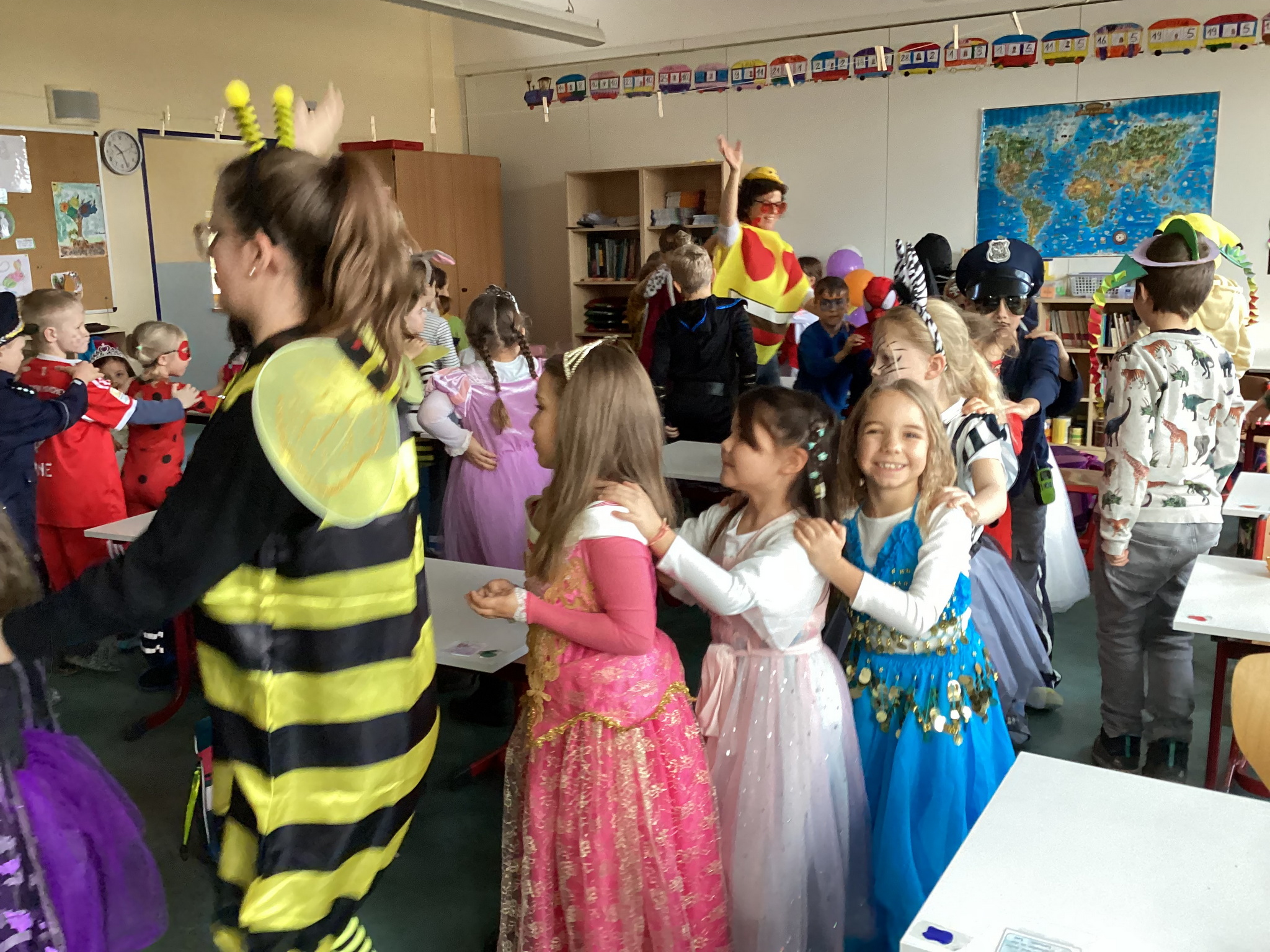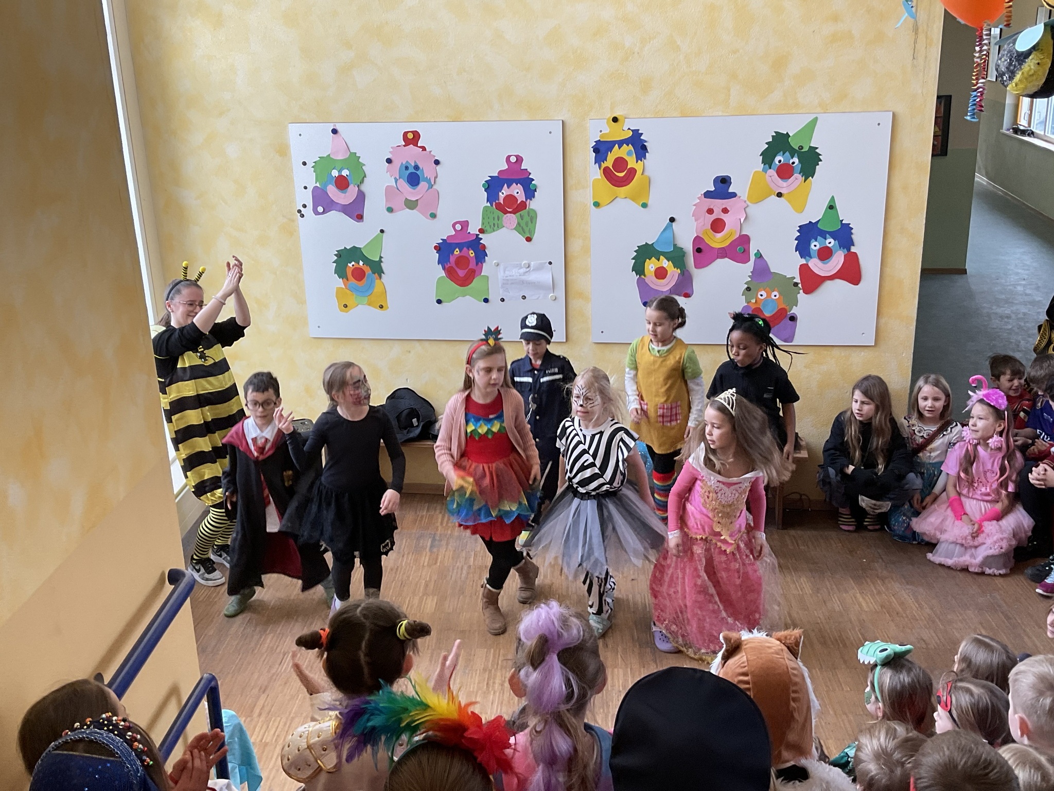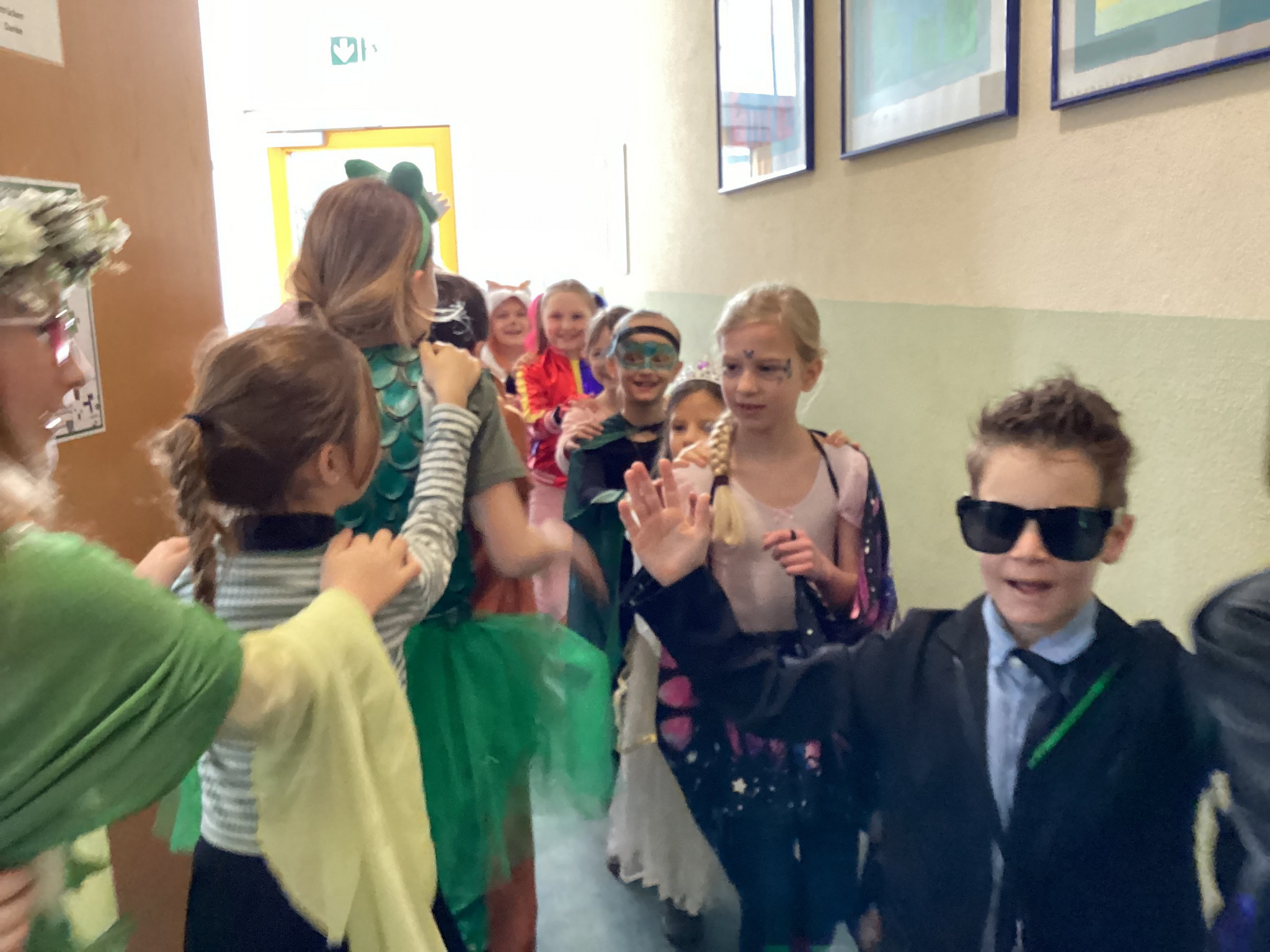 Am Freitag, den 13. Februar, fand in unserer Grundschule eine fröhliche Faschingsparty statt. Schon am Morgen kamen alle Kinder bunt verkleidet in die Schule. Man konnte Prinzessinnen, Omas, Polizisten, Lehrer, Superhelden und sogar Tiere entdecken. Die Kostüme waren sehr kreativ und farbenfroh.