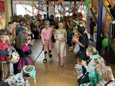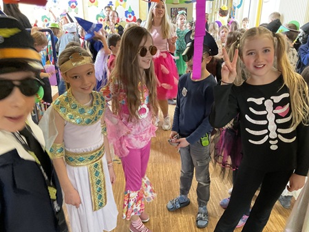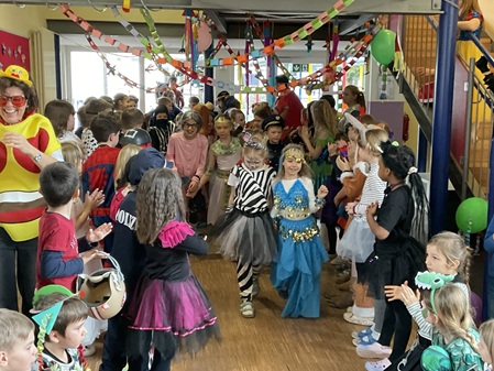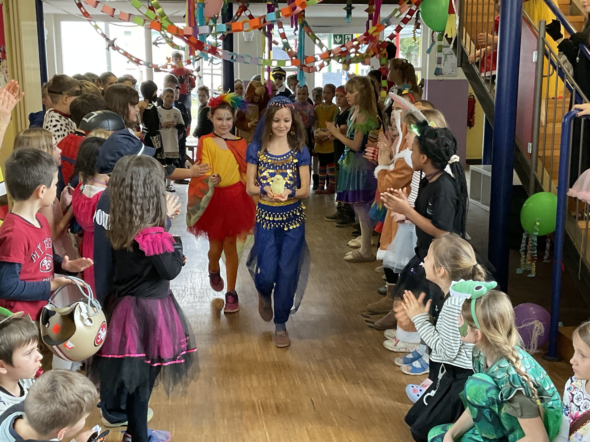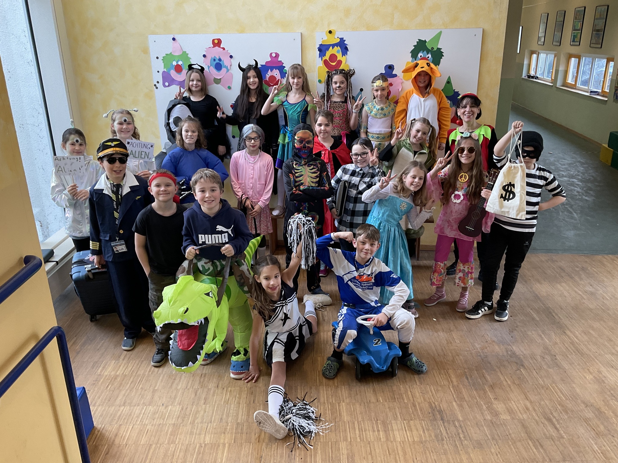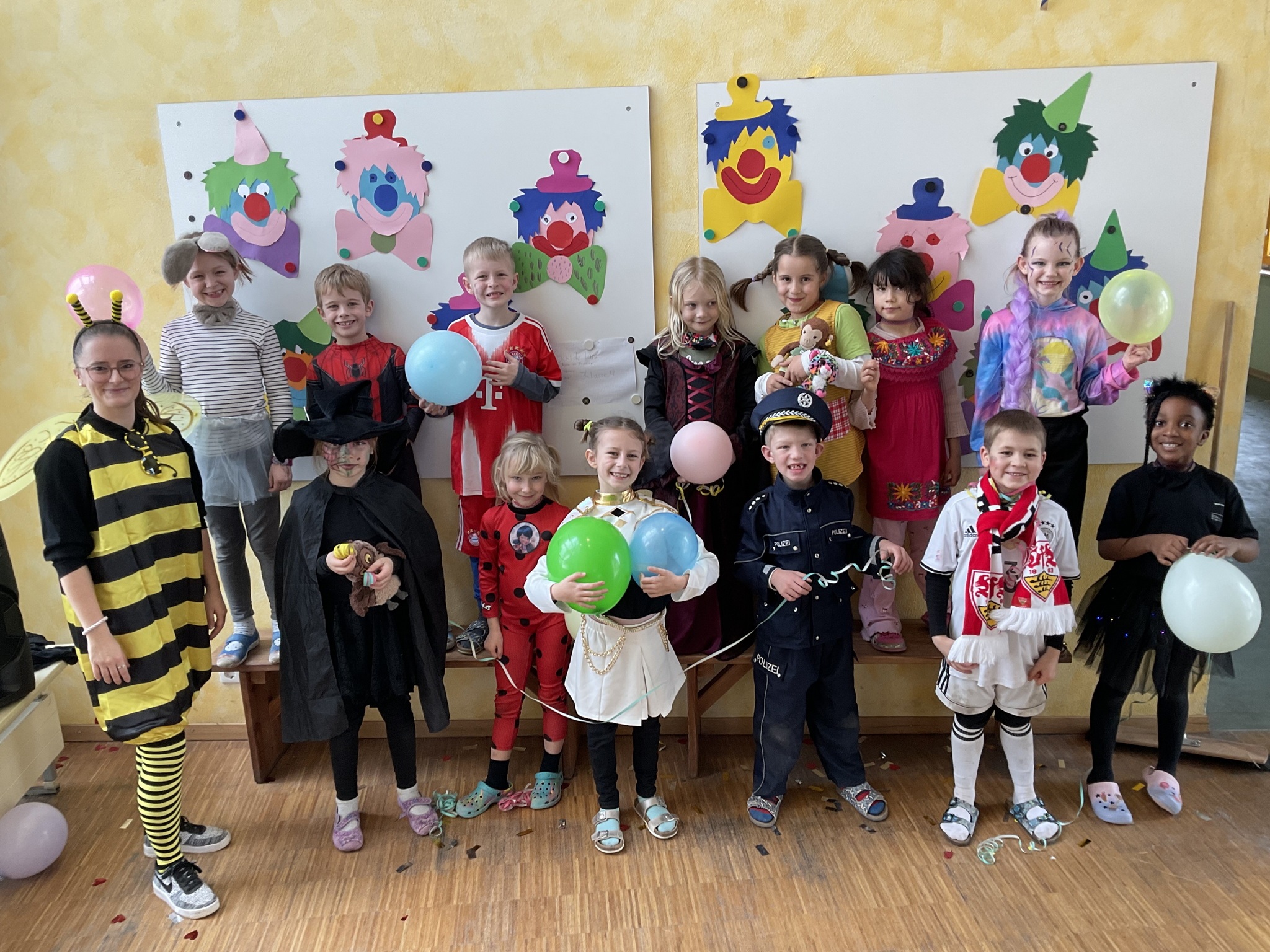 Am Freitag, den 13. Februar, fand in unserer Grundschule eine fröhliche Faschingsparty statt. Schon am Morgen kamen alle Kinder bunt verkleidet in die Schule. Man konnte Prinzessinnen, Omas, Polizisten, Lehrer, Superhelden und sogar Tiere entdecken. Die Kostüme waren sehr kreativ und farbenfroh.