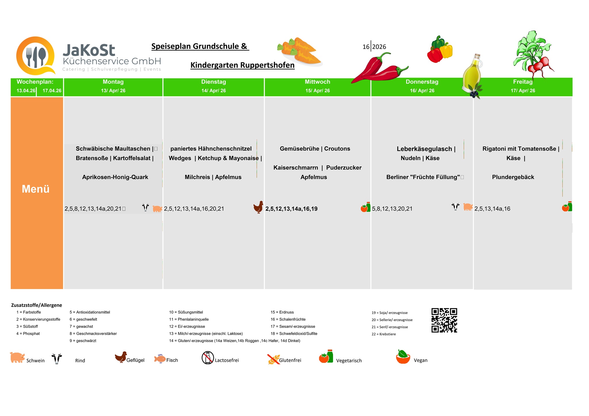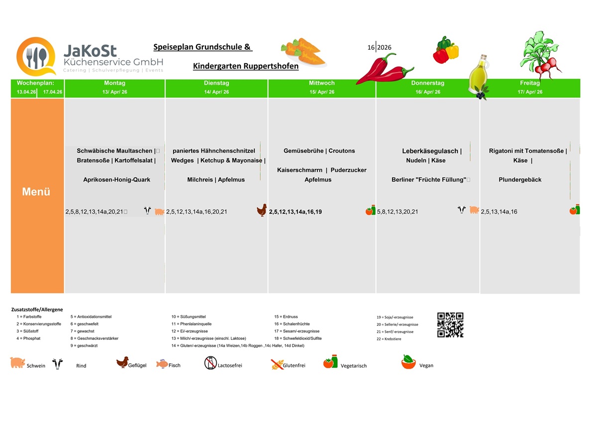 Speiseplan für die Woche vom 13.04.2026 bis 17.04.2026