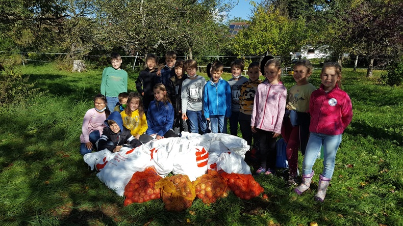 Das Sammeln hat sich gelohnt: 280 Liter konnte gewonnen werden! Der Apfelsaft wird nun im Laufe das Schuljahres zum Mittagessen in der Mensa serviert.