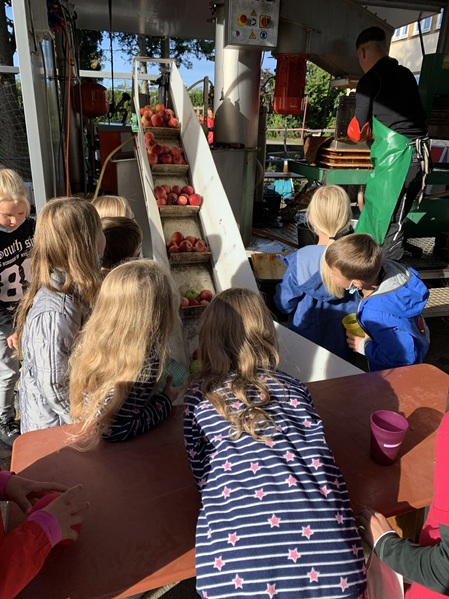 Am Freitag, 01.10.2021, machte die mobile Saftpresse auf dem Pausenhof Station. Die Tage davor waren alle Kinder fleißig dabei, möglichst viele Äpfel zu sammeln.