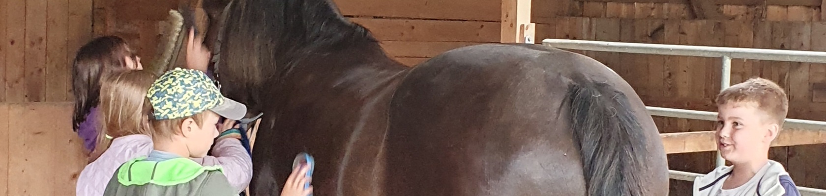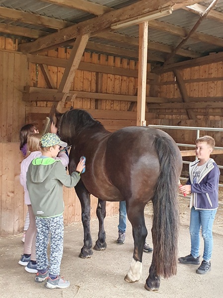 Besonders freuten sich die Zweitklässler darüber, die Pferde des Hofes streicheln und striegeln zu dürfen.