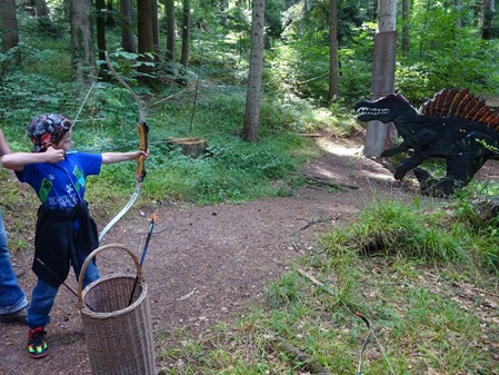 Im Juli besuchte die Klasse 1 der Zenneck-Schule auf Einladung von Familie Steeb / Schmitz den Jakobsberg, auf dem man auf einem Bogenschützen-Parcours alle fünf Kontinente besuchen kann. Zuerst erkundeten die Kinder Asien und enteckten im „Dschungel“ viele wilde Tiere. Nach einer ausgedehnten Vesperpause betrat man die Urzeit und suchte und fand die verschiedensten Dinsosaurier. Bei einem konnten sich die Kinder sogar als Bogenschützen ausprobieren. Auf dem Hof von Familie Steeb / Schmitz durften die Kinder dann nach Lust und Laune spielen und die vielfältigen Spielmöglichkeiten ausprobieren. Durch „Afrika“ hindurch ging es dann zurück zu den wartenden Elterntaxis.
