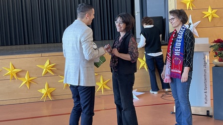 Jürgen Henzler vom Staatlichen Schulamt Göppingen verglich die Arbeit eines Rektors mit der eines Fußballtrainers: „In einer Schule geht es zu wie auf einem großen Fußballplatz“. Ein guter Trainer erkenne Talente, fördere Potenziale und höre jedem Kind zu. Mit Zitaten von Ottmar Hitzfeld und Pep Guardiola betonte er die Bedeutung von Teamarbeit und lebenslangem Lernen, bevor er Bauer die Ernennungsurkunde überreichte.