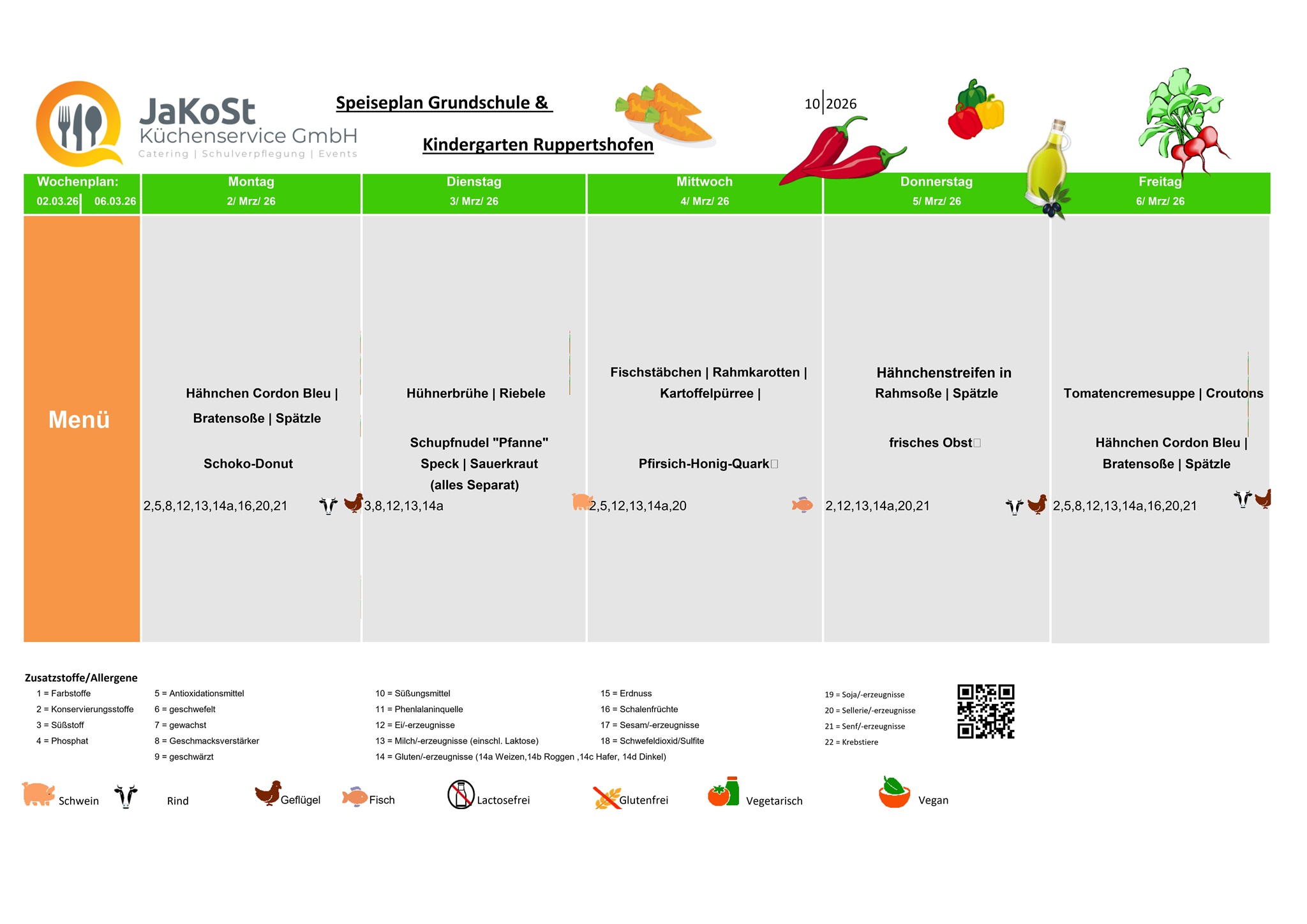 Speiseplan für die Woche vom 02.03.2026 bis 06.03.2026
