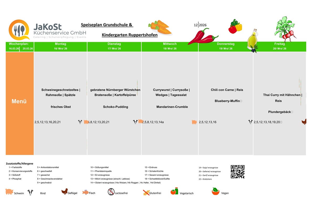 Speiseplan für die Woche vom 16.03.2026 bis 20.03.2026