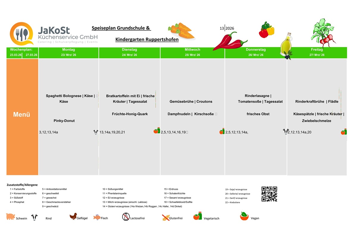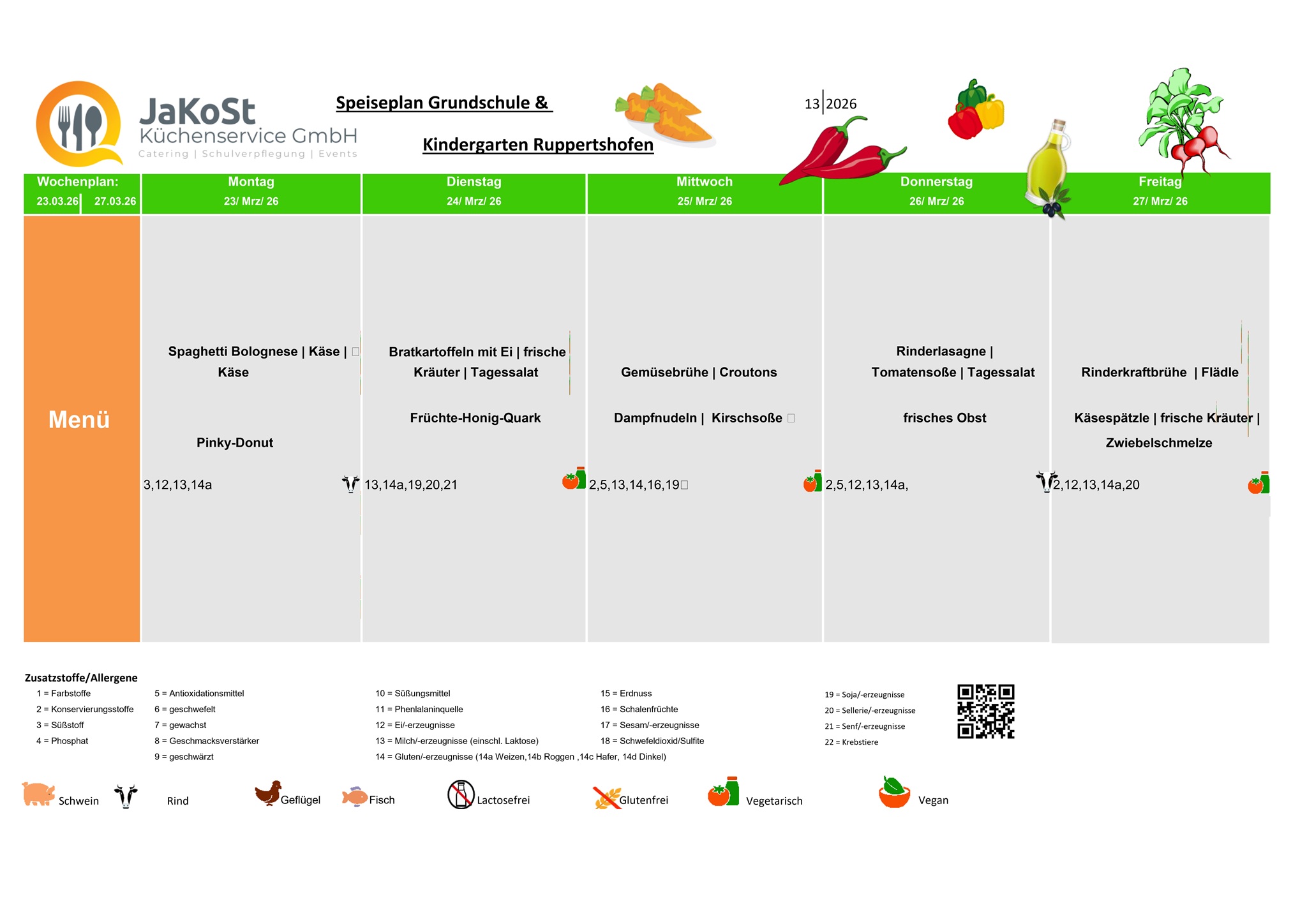 Speiseplan für die Woche vom 23.03.2026 bis 27.03.2026