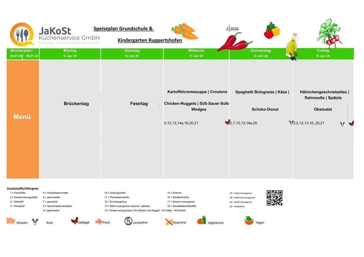 Speiseplan für die Woche vom 05.01.2026 bis 09.01.2026
