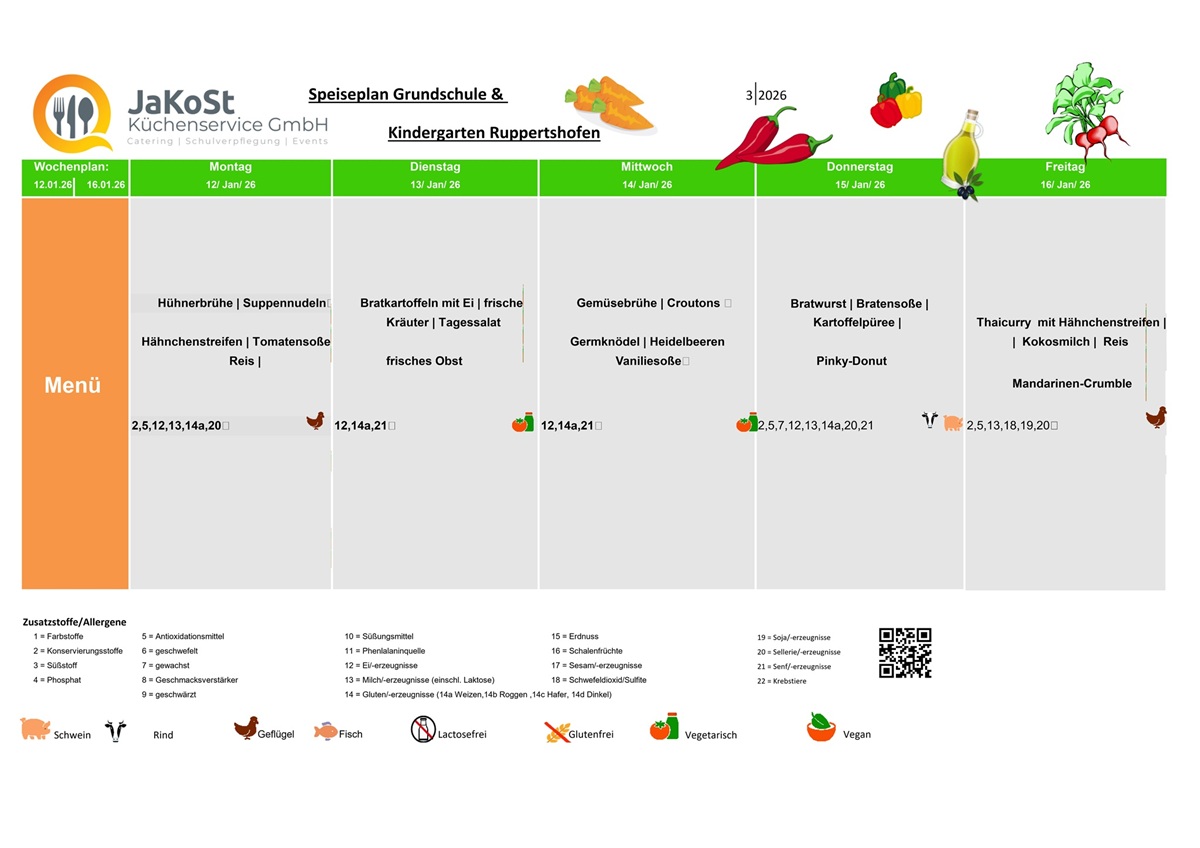 Speiseplan für die Woche vom 12.01.2026 bis 16.01.2026