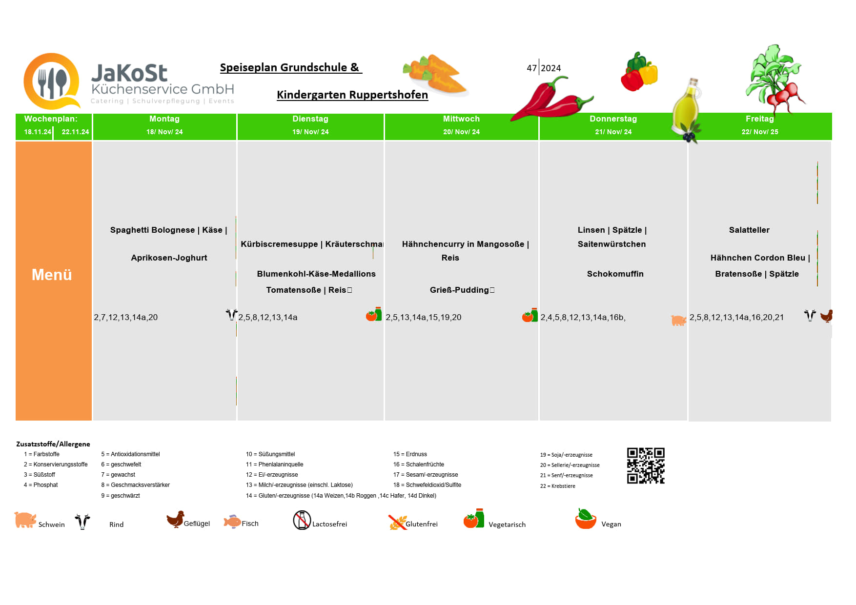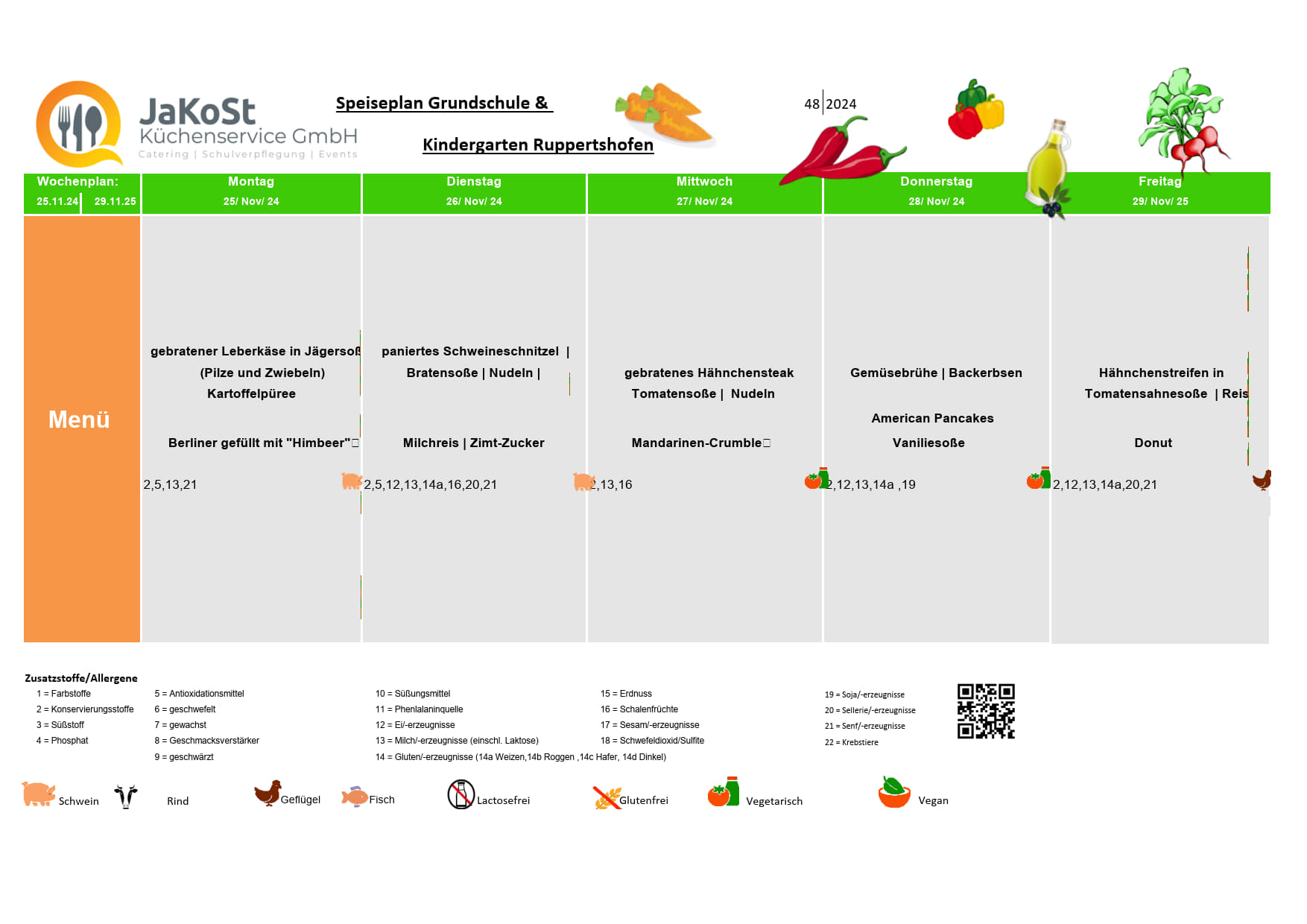 Speiseplan für die Woche vom 25.11.2025 bis 29.11.2025