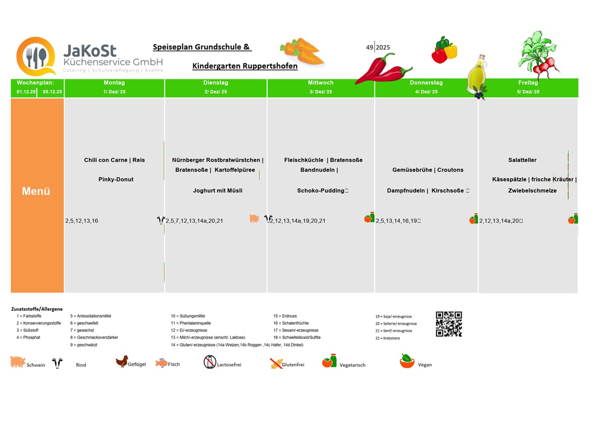 Speiseplan für die Woche vom 01.12.2025 bis 05.12.2025