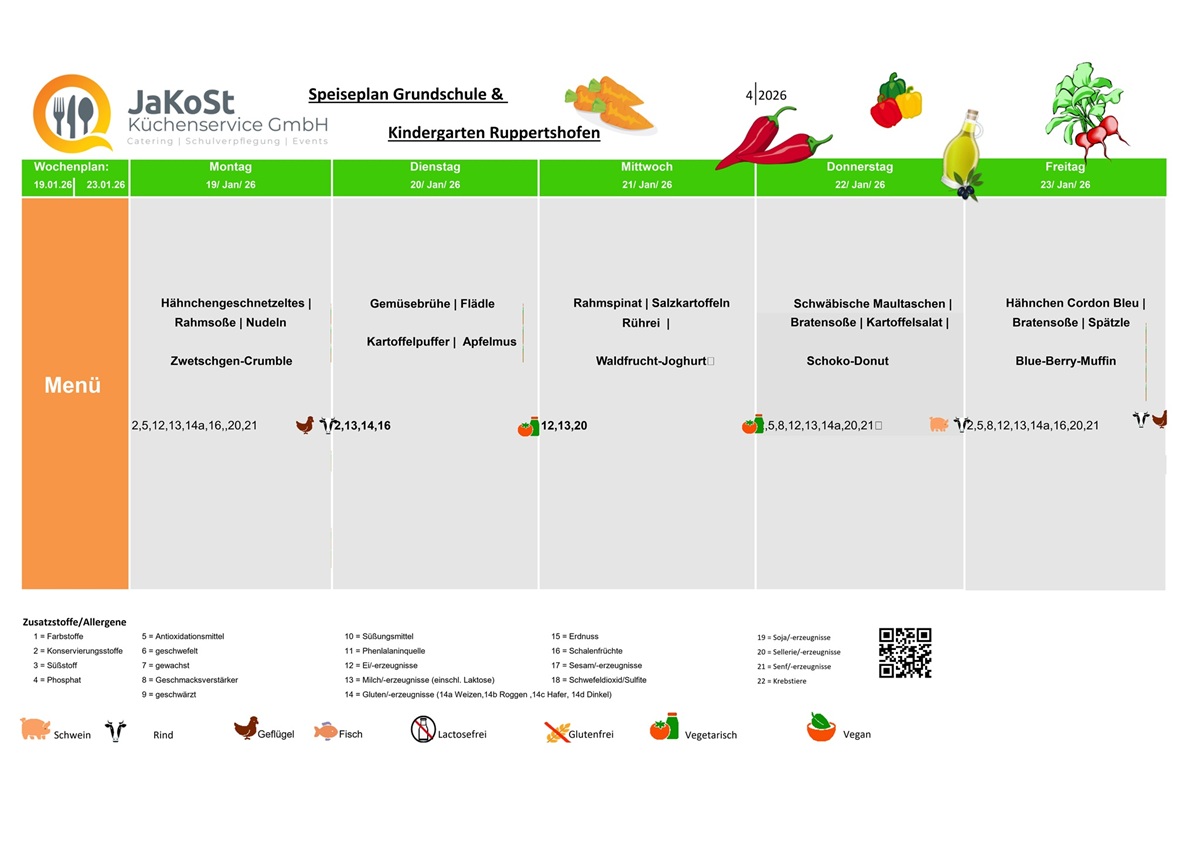 Speiseplan für die Woche vom 19.01.2026 bis 23.01.2026