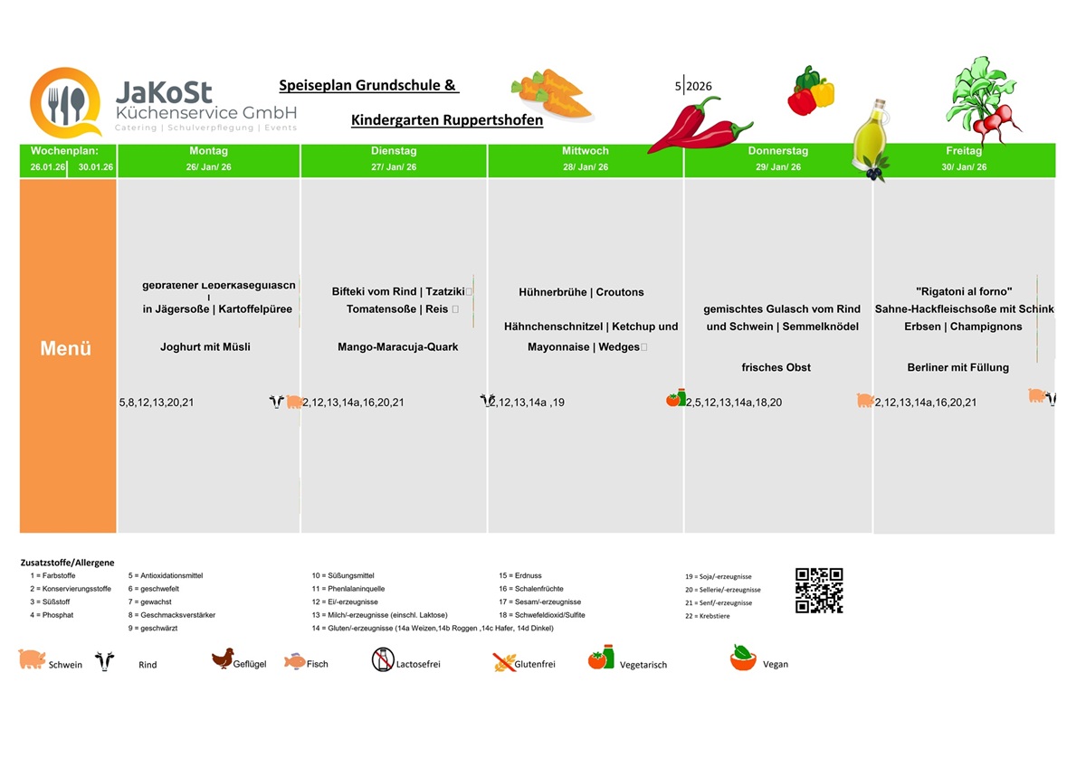 Speiseplan für die Woche vom 26.01.2026 bis 30.01.2026