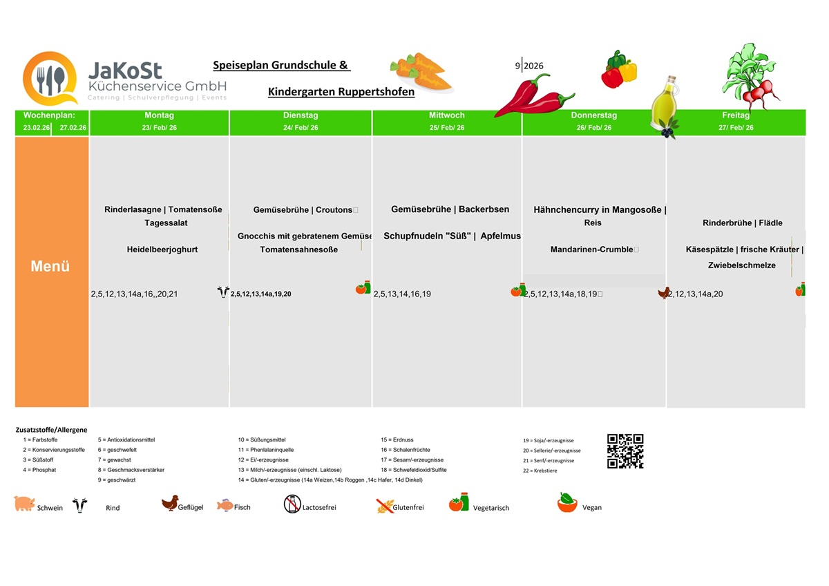 Speiseplan für die Woche vom 23.02.2026 bis 27.02.2026
